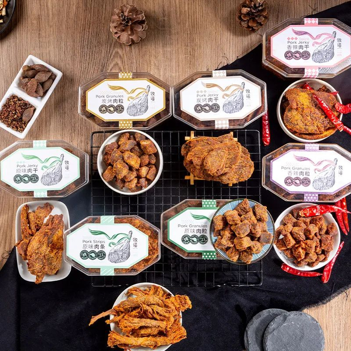 追剧、聚餐、或者午饭之后晚饭之前的“空窗期”,拆开几盒牧谣猪肉干来洗洗舌头、磨磨牙齿,别提多惬意了~