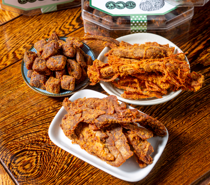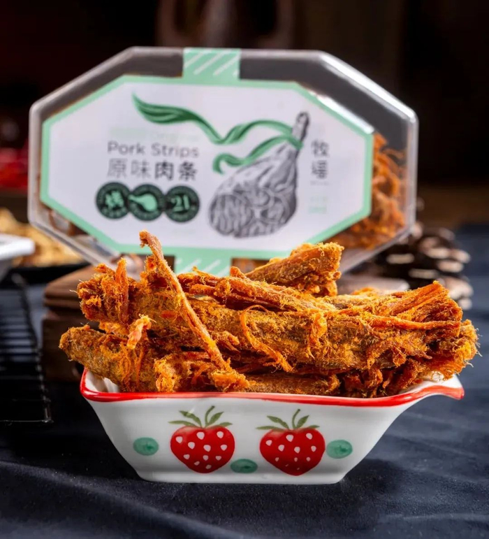 先用文火炒香猪肉,控干入味,再花4小时低温烘烤,慢慢逼出多余水分,浓缩猪肉的鲜香,同时又不会让肌肉纤维老化紧缩。