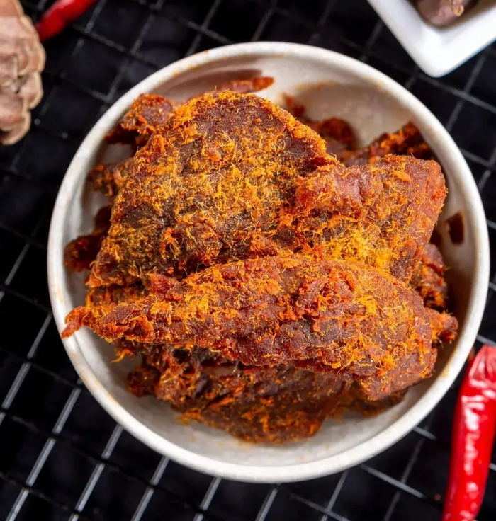 炭火烘烤,赋予猪肉干迷人的烟火气息。
