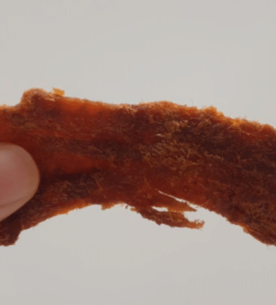 这款肉干在制作时,不计成本,使用人工切肉,吃起来有嚼劲,但又不塞牙。