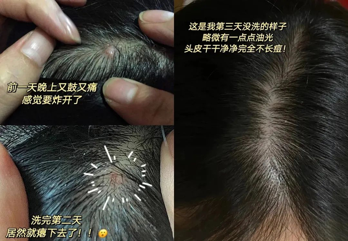 头螨消失、头皮环境健康,毛囊重新恢复生机活力,头屑、油脂、瘙痒慢慢的都少了!原本风一吹就掉的头发,现在也牢固许多!
