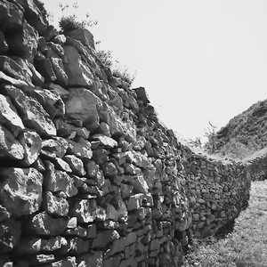 在灵寿县车谷坨村海拔1500多米的太行山之巅,矗立着一座敌台,这是车谷坨长城的制高点。敌台就地取材,用不规则的太行山青石垒砌,残留下的基座有3米多高,可以想见当年“一夫当关 万夫莫开”的气势。车谷坨长城最早建于北齐天保年间。北齐长城由赵郡王高睿主持修建,《北齐书·高睿传》记载,“六年,诏睿监筑长城。于时盛夏,睿屏除盖扇,亲与军人同劳苦。”北齐长城后来大多数被明代长城利用或重修,车谷坨长城已不是修建之初的样貌。