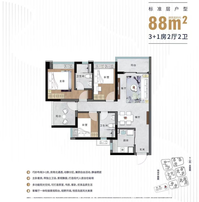 当然,在具体的户型设计方面,湾区·金融城用心研究客户住房需求,洞悉客户所想,力求产品精益求精。湾区·金融城新推售的建面约88㎡户型,3+1房,还带主卧套间,让人第一眼就沦陷其中。