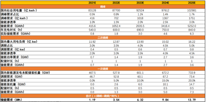 在电网侧,预计2021-2025年电网侧独立储能需求将达1.2/3.5/6.3/9.8/13.8GWh,复合增长率约为85%。<_o3a_p>