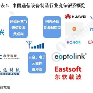 通信设备制造方面,行业经历数十年变革,飞速发展,国内设备商直接向全球各国运营商提供通信设备,中国也成为了全球通信设备制造行业竞争的主要战场之一。目前,国内通信设备制造行业形成了以华为、vivo、OPPO、小米、荣耀等实力强劲企业为代表的多头垄断市场,行业集中度很高。