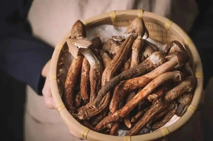 为了封存鸡枞独一无二的腴鲜,深谙菌子食用之道的云南人因菌制宜,用着一招油烹之法,将鸡枞菌完美封存,油鸡枞应运而生。