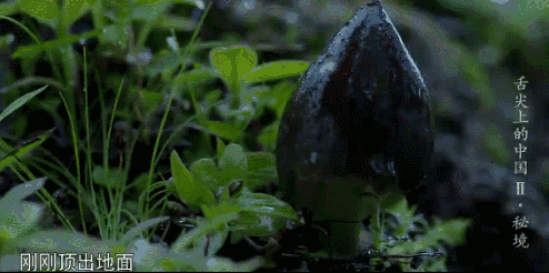 松林秘境,白蚁和雨水共同努力,鸡枞在含有大量木质纤维的、由白蚁的半消化物和疏松蚁巢构筑的菌圃中繁殖,相互扭结螺旋生长,最终拔出地面,在满地松针、草木的环绕下成长为鸡枞菌。