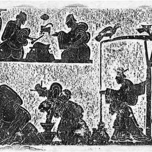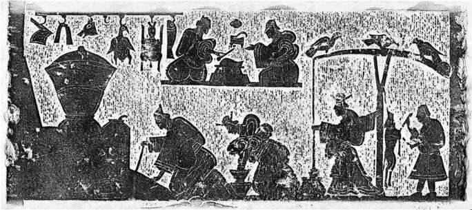这些《庖厨图》附属于祠堂,学者信立祥说:“从考古发现看,一般中下级官吏和较富有的豪绅,在墓前都只建一座独立的祠堂,而不再另建‘寝’和‘斋室’。但其使用目的,却兼‘庙’‘寝’‘斋宫’之职能而有之,这也就是祠堂又名为‘庙祠’‘斋祠’和‘食堂’的原因。”