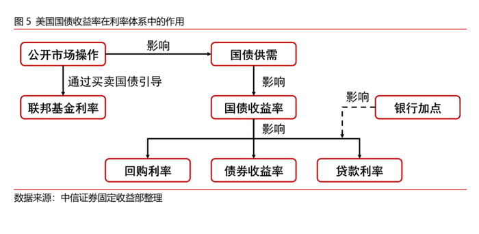 作为一种无风险收益率,美国国债收益率是其他债券收益率和贷款利率等的定价基准,在美国实体利率体系中起到不可代替的作用。
