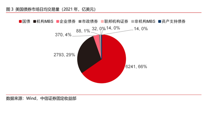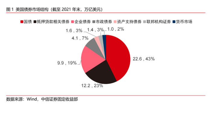作为以美国联邦政府信用为担保的债券,美国国债的风险低、流动性高,是美国利率体系中的重要组成部分。美国国债既是美联储实施公开市场操作的主要操作品种,也是金融市场中一种重要且常用的抵押品。除此以外,美国国债的收益率也是其它债券和贷款利率的定价基准。因此,美国国债在其利率体系中有着举足轻重的地位。