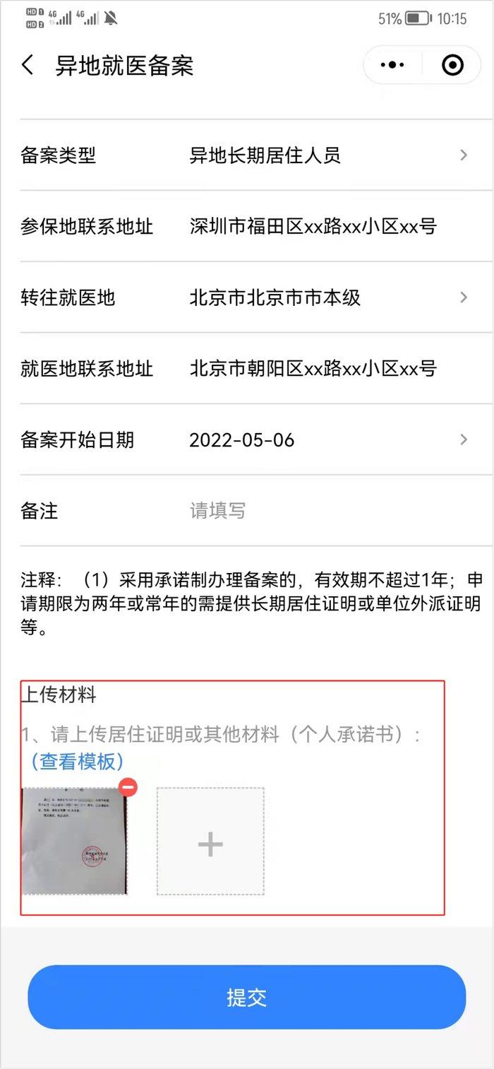 2.异地长期居住人员:居住证明或个人承诺书;