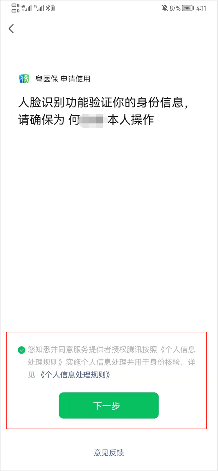 1、进入微信“粤医保”小程序,点击“未登录”→选择人员类别→勾选《个人信息处理规则》须知,点击“下一步”采用人脸识别的方式登录。
