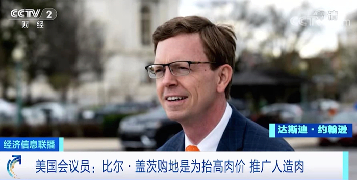 针对比尔·盖茨在美国大举购买农田,同时又告诉美国人不要吃肉一事,美国南达科他州国会议员达斯迪·约翰逊希望比尔·盖茨可以对此作出解释,包括购买这些农田有何计划。约翰逊认为,比尔·盖茨此举目的是人为地抬高肉类的价格,使其高得令人望而却步,从而迫使人们在不久的将来食用人造肉。