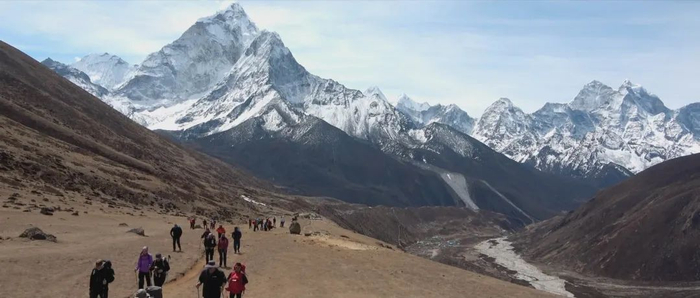EBC徒步线路中,快到罗布切峰时,《珠峰队长》摄制组拍摄到的喜马拉雅雪山群峰。