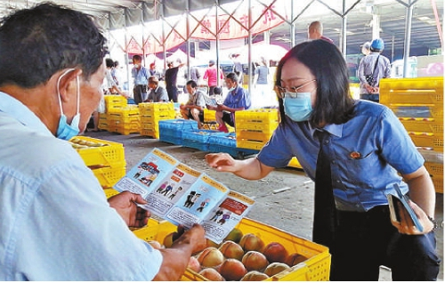7月22日,无锡市惠山区检察院干警向桃农们开展法治宣传。