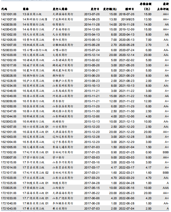 图表:银行二级资本债不赎回债券明细