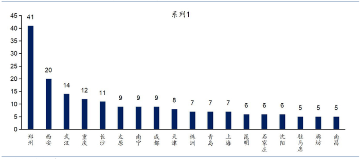 图表:贷款风波所涉项目达5个及以上的城市