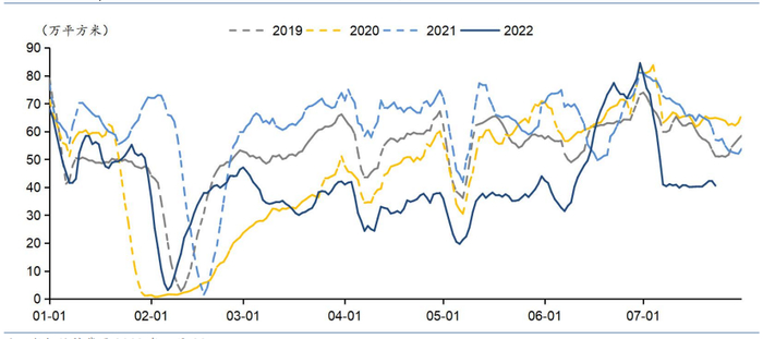 图表:7月,30城商品房成交面积回落明显(7日移动平均值)