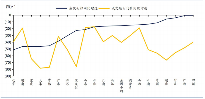 图表:2022H1全国土地市场普遍遇冷,多数省份土地成交量价齐跌
