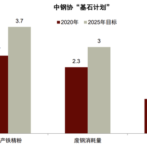 中钢协的“基石计划”提出从三个维度提升铁元素的资源保障能力,计划到 2025年实现国内矿产量、废钢消耗量和海外权益矿分别达到3.7亿吨、3亿吨和2.2亿吨的目标,较2020年分别增加1亿吨、0.7亿吨和1亿吨。除传统的原生铁矿石以外,再生废钢资源亦有助于资源供给渠道的多元化,同时也是双碳路径下的关键过渡。
