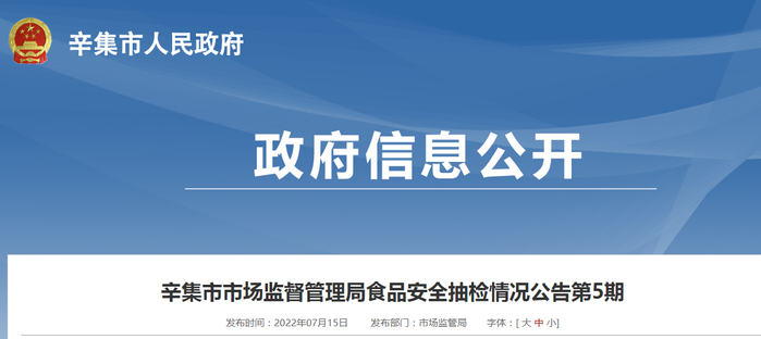 中国质量新闻网讯 日前,河北省辛集市人民政府网站公布一条食品抽检信息,涉及辛集市市场监督管理局食品安全抽检情况公告第5期。