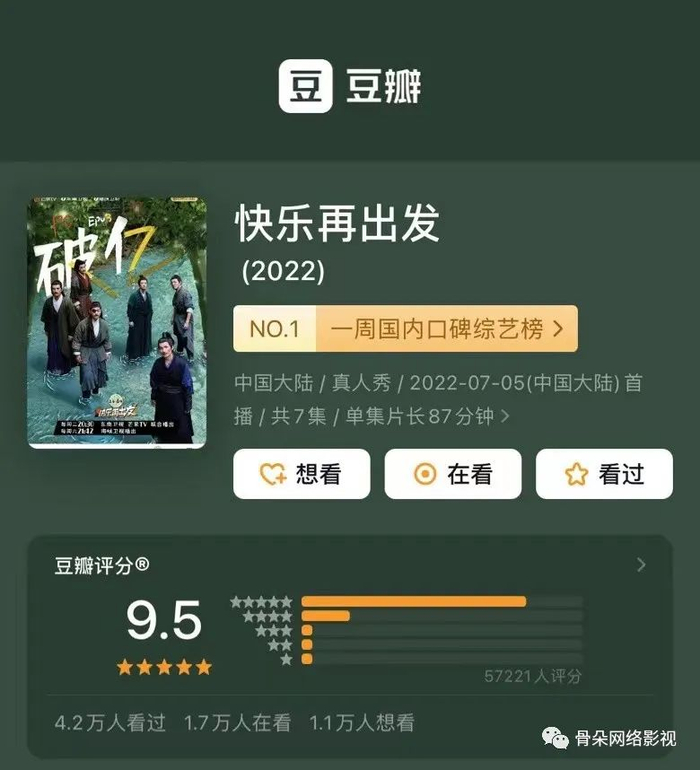 就在这个月,国产综艺史上迎来了见证奇迹的时刻。一档由6位过气的“快乐男声”陈楚生、陆虎、苏醒、王栎鑫、王铮亮、张远组成的老友穷游慢综艺,被4.2万豆瓣网友打下了9.5分的高分。