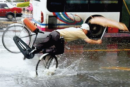 面对积水路面行车驾驶有一个口诀:一看、二探、三通过。