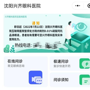 兴齐眼科医院发布暂停互联网渠道销售通知