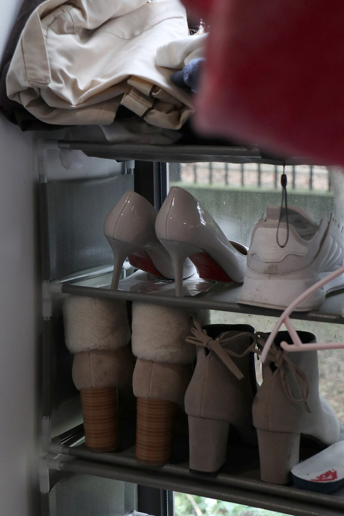 小梅阿姨在学校里放了三双高跟鞋。白色那双细跟是她新买的,配驼色风衣穿。了解的越多,觉得阿姨越可爱。