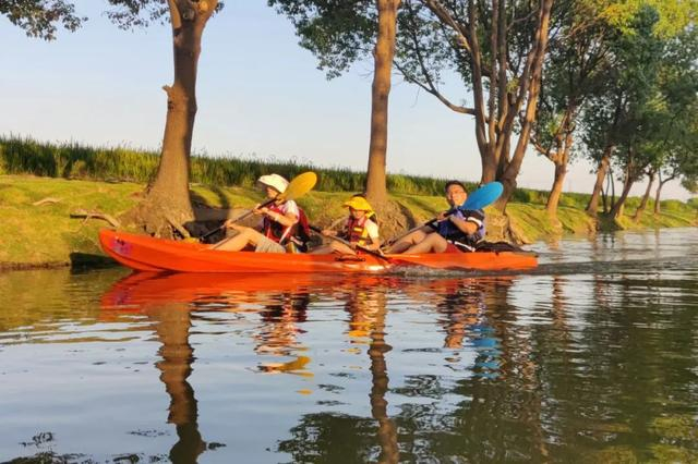 颜色鲜艳的“小船”点缀在波光粼粼的水面上,非常吸引眼球。在游客体验皮划艇项目之前,专业教练会先教授正确的划桨方法和相关注意事项。游客下水摸索一番后,就能驾驶皮划艇在乡村河流上一路前行,开启一片由自己掌控的水上世界。