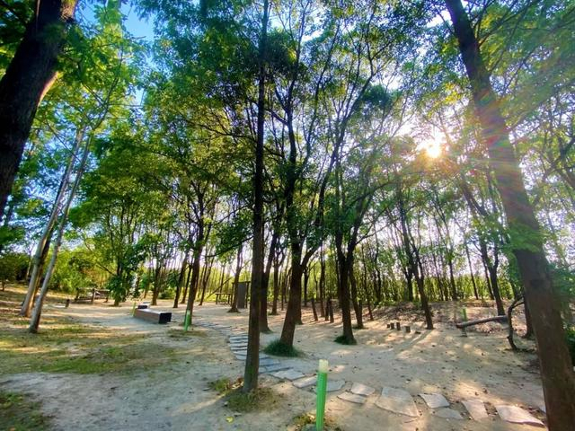 仲夏的亨嘉庄,蓝天白云之下,绿树环抱的湖面碧波粼粼,有时还能在岸边挖到吐着泡泡的小螃蟹。穿梭于林间,斑驳的光影透过郁郁葱葱的叶片洒落下来,十分凉爽惬意。