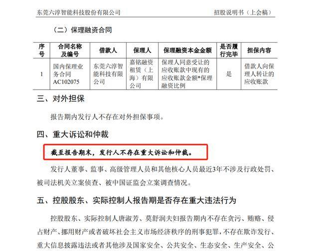 但是,在8轮招股说明书(征求意见稿)和招股说明书(会议草案)补充中,及六淳科技IPO前后修订,未披露对其2021年业绩做出重要贡献的下属。报告期内,发行人无重大诉讼、仲裁事项”。