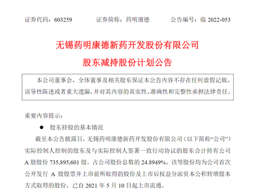 6月初,药明康德曾对外披露,预计公司2022年第二季度收入将实现63%至65%的增长。但随后,市场又等来一份减持公告。