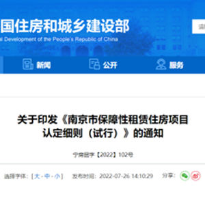 7月26日,住建部官网公布了《南京市保障性租赁住房项目认定细则(试行)》。