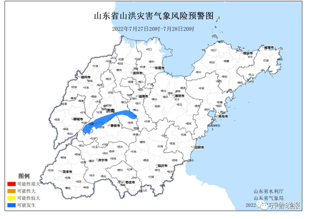 7月27日联合发布山东省山洪灾害气象预警:
