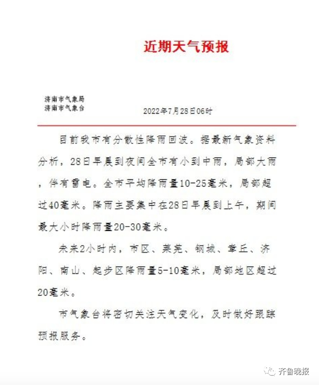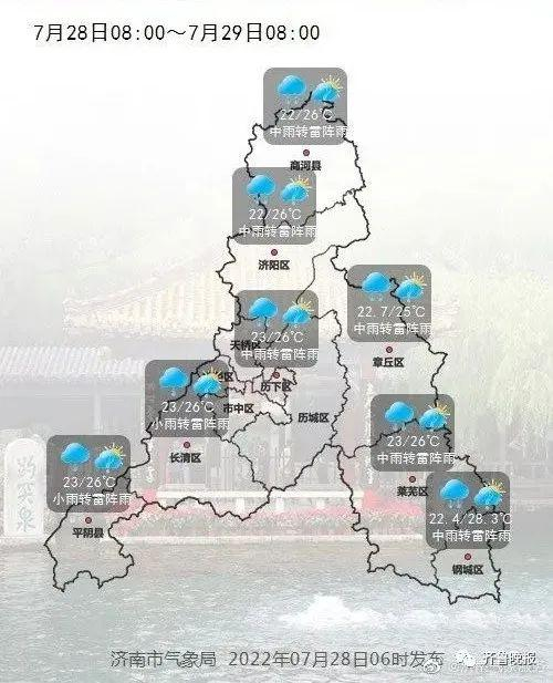 山东省气象台2022年7月28日06时发布天气预报: