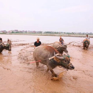上海水牛1岁半即可进行调教使役,一般2-3天就能学会耕地;成年牛一般每天可使役8小时,可耕水田4-6亩、旱地6-8亩,最高可耕10亩,犁地深度14-20厘米。简单来说,1头水牛可顶20个精壮劳动力。