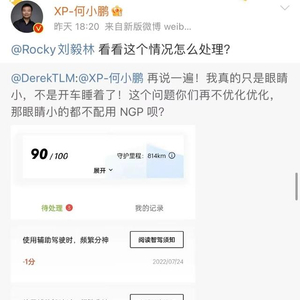 同时,该博主还发文@小鹏汽车创始人何小鹏称:“我真的只是眼睛小不是开车睡着了,小鹏汽车的辅助驾驶功能需要优化,否则岂不是眼睛小的人都不能用NGP呗?”