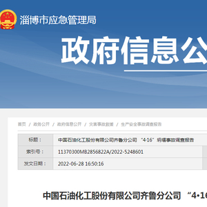 日前,山东省淄博市应急管理局公布了《中国石油化工股份有限公司齐鲁分公司 “4·16”坍塌事故调查报告》。
