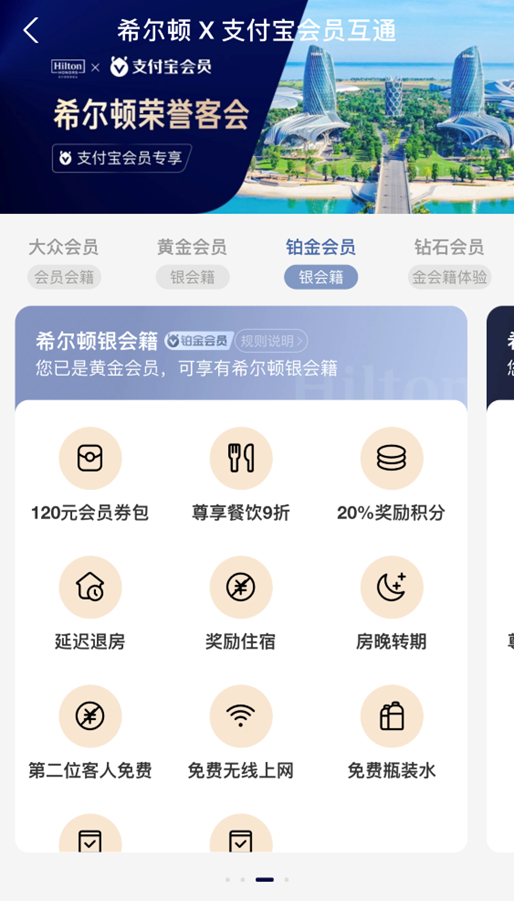 希尔顿等8大高星酒店与支付宝匹配会员等级 为高价值用户提供增值服务