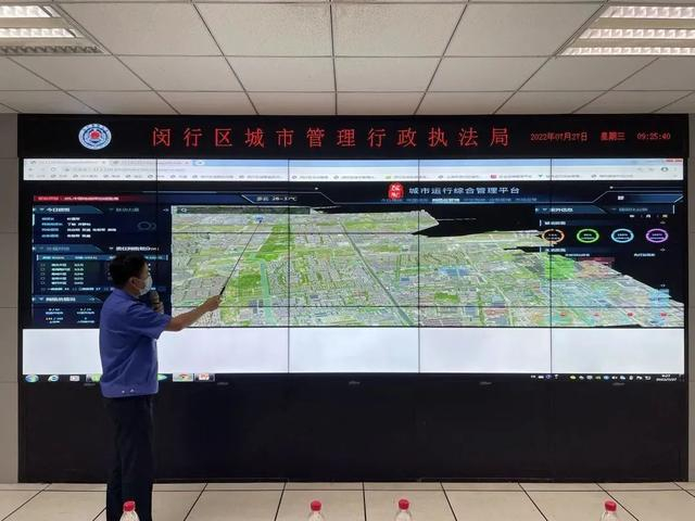 在区局指挥中心,梅陇中队、吴泾中队分别就智慧街区管理系统和龙吴路生态智能管理系统运用情况进行介绍,区城管执法局就非现场执法项目推进情况进行汇报。
