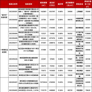 此外,在以往拼杀的场面退潮之后,部分偏远的小地块出现了不少新面孔,这些新面孔在上海土拍的“喘息”当口赢得了一席之地,比如大众交通、上海博蔚置业、上海文基置业这些鲜有耳闻的房企。