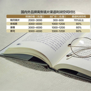 以明月镜片为例,其离焦镜产品主要以眼镜零售店销售为主,终端价虽约为外资品牌的60%~80%,但凭借百元级别的出厂价、强大的营销网络,渠道利润空间超70%。