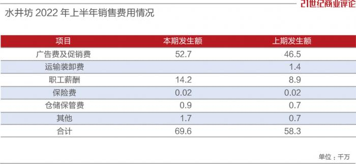 上半年水井坊的销售费用约7亿元,同比增长19.27%,几乎是净利润的两倍。销售费用率为33.7%,居行业前列。