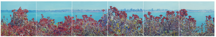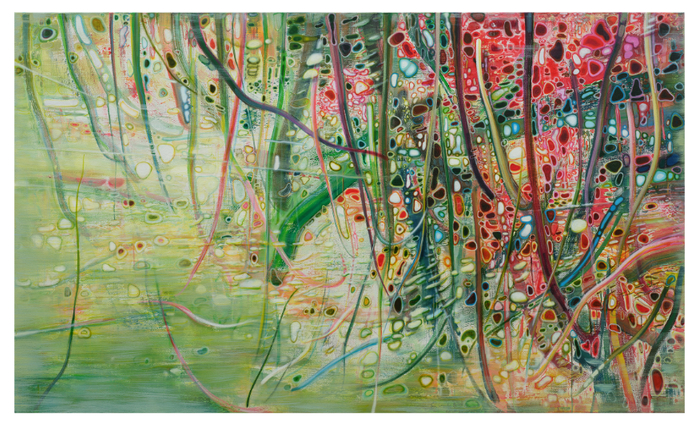 生生不息《Growth·Nerves》 是青年艺术家陈澈创作的融合了数码特征的架上作品。画面上蔓延生发的或嫩绿、或绯红色的枝条既是春日生长的植物,又如同人类大脑的神经网络,携带海量信息的细胞“散落”其中。作者以独特的视角,用自然景观折射人类世界的“内心景观”。