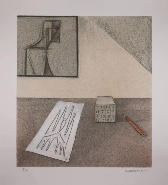泉果基金还收藏了西班牙艺术大师苏比拉克在生前亲手创作的版画,作品最早由其女儿朱迪·苏比拉克赠送。苏比拉克是与毕加索、高迪和达利齐名的西班牙艺术大师。他在高迪去世后,接手继续主持西班牙圣家族大教堂(圣家堂)的设计。因为教堂的雕塑在创作时必须一次成型,很难返工,苏比拉克就需要先创作出雕塑素描,再进行实雕,这件版画就是他当初为了创作圣家堂而制作的“样本”之一,画中还包括最著名的“苏比拉克幻方”。为了在有生之年完成创作,他搬到圣家堂工地居住长达25年,其对艺术的执着与求索令人叹服。