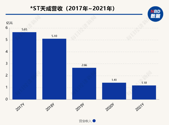 *ST天成背后是广西壮族自治区国资委,公司处在退市边缘,主营业务已接近停滞,营收规模连续多年萎缩,从2017年近6亿元萎缩至2021年的1.18亿元,2022年第一季度更是下滑近8成。