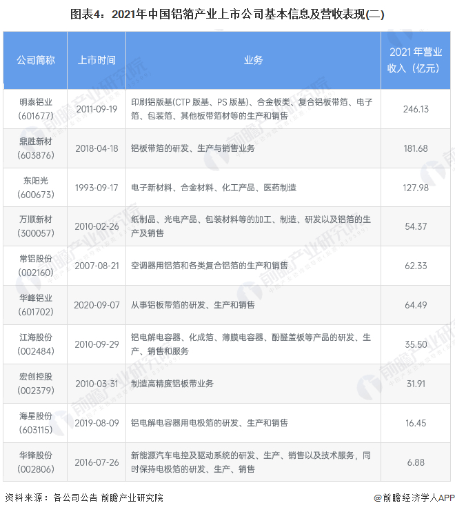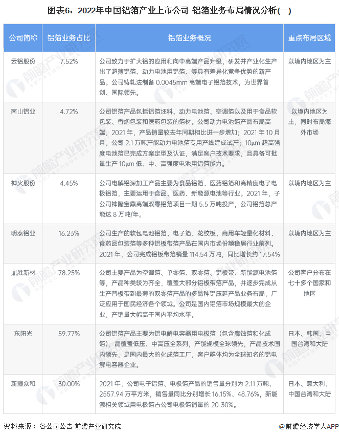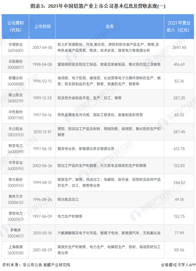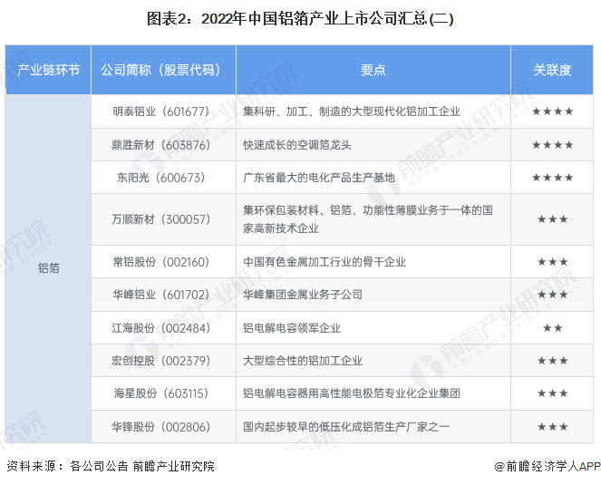 本文核心数据:铝箔产业上市公司汇总、铝箔业务布局情况