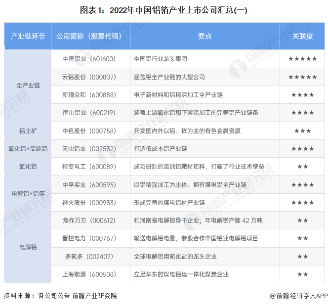1、铝箔产业上市公司汇总