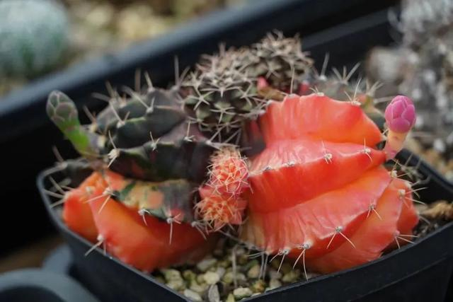 这种神奇现象行话称之为“出锦”,出现在不同品种的仙人掌科植物中,是绿色植株基因突变的结果。由于这样的变化是自然形成的,因此“出锦”的颜色也是随机的,有时是黄色,有时是红色,还会出现同一植株花开两色的现象。